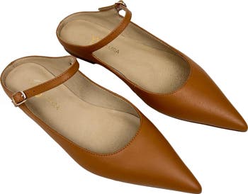 Supersmooth leather and a slender buckle strap refine this pointy-toe mule cushioned with memory foam for daylong comfort.