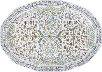 Serve up a hint of romance and whimsy when you set your table with this hearty stoneware platter festooned with a lush, folkloric floral motif inspired by the Spanish countryside.