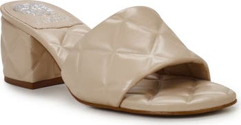 A quilted strap and footbed bring cushy texture to this leather sandal set on a walkable block heel.