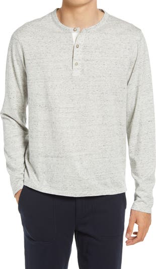 A linen blend crafts a classic long sleeved henley that is perfect for layering.