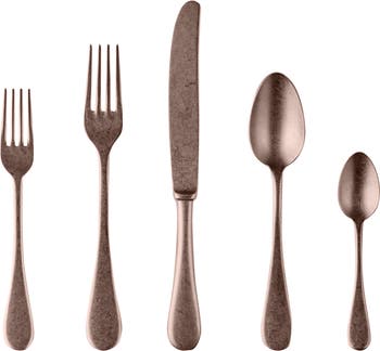 Elevate your dining experience with the Vintage Flatware Collection, meticulously crafted in Italy from the finest 18/10 stainless steel with a durable 3.0mm thickness. This collection seamlessly marries durability and ergonomic comfort, featuring double serration on the knives for enduring sharpness. The addition of a PVD Titanium Coating adds a touch of sophistication to the stainless steel, while the product s longevity is assured through testing for over 3000 washes in commercial dishwashers. Transform your meals with this beautiful Italian flatware that combines style, quality, and reliability.