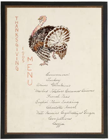 Vintage Thanksgiving Menu on a distressed bookplate background