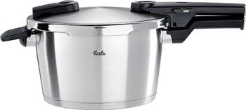 Experience the pinnacle of healthy and fast cooking with the Fissler Vitaquick Premium Pressure Cooker. Made in Germany, it saves up to 70% of cooking time while preserving vitamins and flavors. Crafted from up to 90% recycled 18/10 stainless steel, it’s compatible with all stovetops, including induction. Enjoy two cooking settings, advanced safety features, and user-friendly design elements for safe, easy, and enjoyable cooking. Plus, it comes with a 10-year warranty for peace of mind.