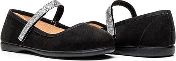 A glitter-encrusted strap adds kid-approved sparkle to this suede mary jane that serves as a versatile addition to your child s wardrobe.