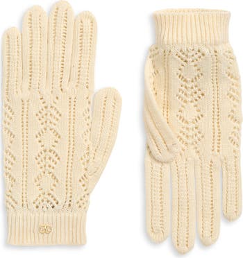 Accessorize like one of Alessandro Michele s retro-eclectic runway characters with these pointelle-knit cotton gloves decorated in gilded VLOGO hardware based on an archival motif from 1979.