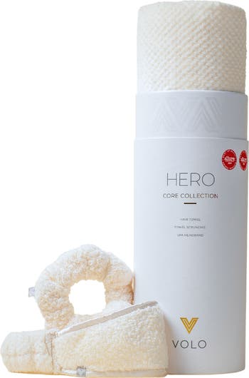 What it does: Exclusive nanoweave fabric is engineered to be incredibly gentle on your roots and skin, without slipping. The Hero towel, headband and scrunchie are designed for maximum comfort, convenience and luxury.