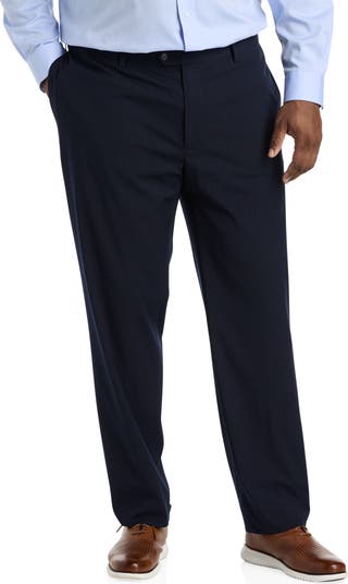 Crafted with a bit of stretch for comfort, these polyester blend dress pants were designed in a contemporary, flat-front style that s perfect for work or special occasions. The signature, hidden waist-relaxer waistband expands up to an extra four inches for total comfort throughout your day. A style you ll find exclusively here at DXL in Big and Tall sizes, the stretch fabric has shape retention which enhances the garment s wearability. An allover plaid pattern adds eye-catching appeal and the 32" inseam can be easily altered to 34" to better fit our taller guests.