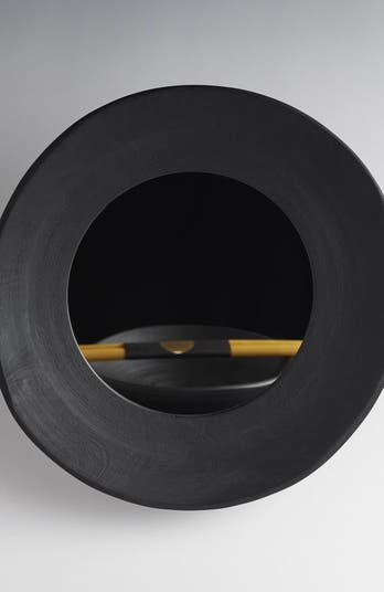 This rounded wall accent mirror features a broad border and D-ring hardware for hanging. These beautiful handmade items will vary from piece to piece due to their natural materials and individual craftsmanship.