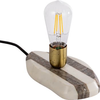 This elegant wall sconce combines the natural beauty of marble with a contemporary striped design in white and buff, adding a touch of sophistication to any room. Perfect for Scandinavian, French country, and farmhouse interiors, it enhances the ambiance with its unique style. The sconce requires one standard bulb, providing ample illumination. Crafted from durable marble and durable metal, it promises both durability and aesthetic appeal. Measuring 9 inches in length, 5 inches in width, and 3.25 inches in height, this versatile sconce can be hung or placed on a surface, making it a stylish addition to the home decor. Whether used in a hallway, bedroom, or living room, this marble sconce is sure to elevate the look of any space with its elegant design. Its timeless appeal and quality construction make it a lasting investment for the home.
