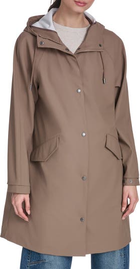 An extended length brings extra coverage to this hooded rain jacket framed with raglan sleeves and outfitted with handy front pockets.