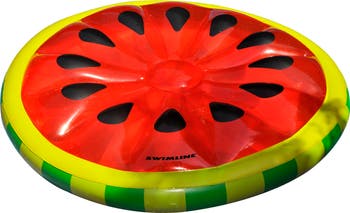 Watermelon slice island is a refreshing twist on a pool island float. Generously sized for one person and made of quality material and bright watermelon graphics, this float is sure to bring sweet fun to the pool. Nothing says summer better than a cool slice of watermelon. Suitable for ages 4 years and up. Weight capacity of 315 lbs. WARNING: CHOKING HAZARD -- Small parts. Not for children under 3 yrs. Use only under competent adult supervision.