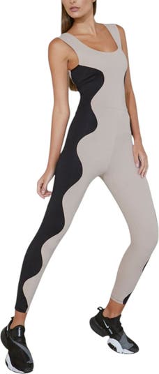 Our signature wave style is re-imagined! Even more flattering, fun and sexy than the leggings version, this unitard features a wavy design that runs down each side of the body, creating a sense of movement and elongating the silhouette. The snug fit and ankle length emphasize this.