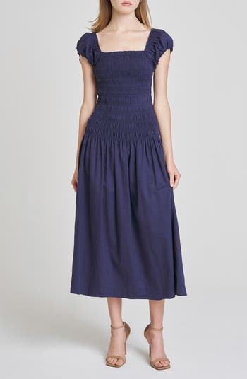 Sunny forecasts call for sweetly smocked dresses cut from a breezy blend enriched with cotton and linen.