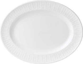 A beautifully textured rim inspired by the handwoven baskets of 19th-century Nantucket defines an elegant serving platter in fine bone china.