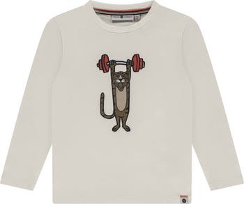 This long sleeve t-shirt features a weightlifting tiger illustration graphic.