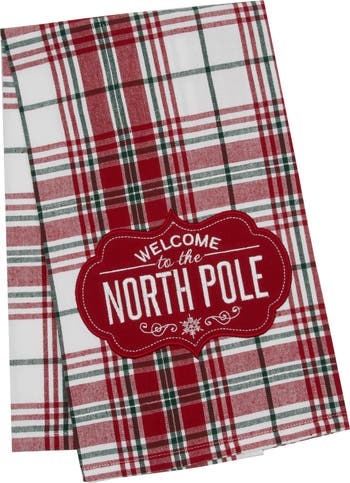 Welcome to the North Pole and your newest kitchen essential. This woven cotton towel adds a dash of playfulness to your decor with the traditional red, white, and green plaid pattern, and an adorable old school applique and embroidery patch with a reminder to embrace the magic of the holiday season.
