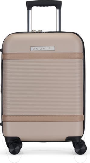 Discover the hardside luggage of Bugatti’s Wellington Collection. Made with lightweight ABS and vegan leather trims, these pieces are built to last. The Wellington Collection feature a telescopic trolley handle that locks in 2 different positions, and 8 360° spinner wheels, for precise control and smooth, quiet rolling. Expandable and secure, this luggage features robust double zippers and a TSA combination lock. The inside includes a dividing panel, 3 tightening straps and various pockets for optimized packing that remains in place during your trip. The perfect set for all adventures.