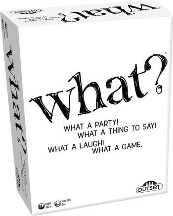 WHAT? - PARTY GAME BY OUTSET MEDIA - WHAT? is a hilarious party game of who-said-what. There is no need to be truthful... there is no need to be tasteful... feel free to be as silly or as funny as you want. Honesty is not the best policy in this game. WHAT is the perfect game for get-togethers and parties. Because players try to guess the author of only one response, game play is very fast. Can be as clean or as dirty as you want. It s a great dinner party game when entertaining a mix of people because it opens up conversation regardless of whether people know each other. And you don t even have to tell the truth, but if you do, they ll never know ....unleash the laughter and leave people wondering, "What were you thinking?" This is the perfect game for teens, families, and adults. Great game for large groups designed for 5 or more players ages 14+. MADE IN CANADA: Proudly manufactured in North America. Outset Media produces games and puzzles that promote learning, fun, and family time.
