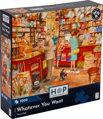 Savor the simple pleasures of a quaint general store with this beautifully illustrated puzzle by Tracy Hall. Made of 1,000 sturdy, high-quality jigsaw pieces, it’s designed to captivate and challenge beginners and seasoned puzzlers alike.