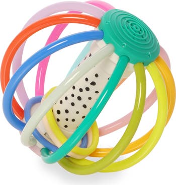 A world of sensory exploration awaits your little one with the Whistleball Colorpop toy featuring a mix of bright colors and bold patterns. BPA-free teething tubes make the toy a great option for soothing teething discomfort and can be refrigerated for more comfort The sensory ball is perfectly designed for little hands and ideal for throwing in the diaper bag when on-the-go.