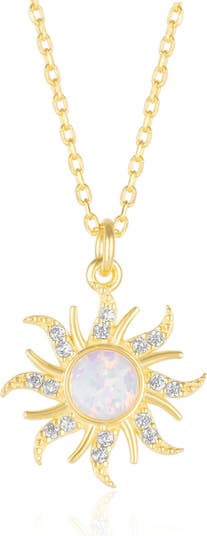 Light up your look with this stunning sterling silver White Opal Sun andamp Sunburst Necklace. Its eye-catching twinkle will add a spark to any outfit! You ll be sure to shine bright with this beautiful necklace. Necklace Length = 16 + 2 Inch Adjustable Pendant = 15mm Length andamp Height