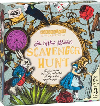 - THE WHITE RABBIT S SCAVENGER HUNT by Professor Puzzle. An indoor treasure hunt for kids adults alike. A whimsical, Alice in Wonderland-inspired adventure filled with quirky, literary nonsense and fun.
