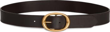 Brushed hardware highlights the rich leather of an Italian-made belt fastened with an adjustable buckle for a secure fit.