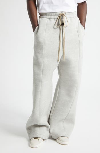 Elongated drawstrings and a rubberized logo patch add subtle branding to these wide-leg sweatpants made from a textural cotton blend.