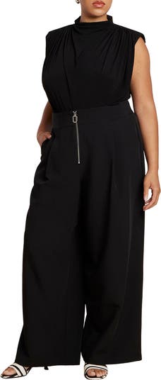 - Cut for a high-rise fit, these tailored wide-leg trousers feature a statement front zipper, sleek folds, and an easy-styling shape. Try yours for the office, nights out, more.