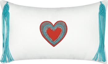 Wild Heart Hand Appliqued Embroidered Tassel Indoor Outdoor Woven Accent Pillow