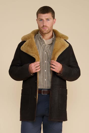 Experience warmth and refined craftsmanship with this men s sheepskin coat, handcrafted from premium doubleface sheepskin for enduring comfort and style. Featuring a wide collar with a soft wool finish, traditional button closure, and practical patch pockets, this coat is designed to keep you comfortable in colder weather. The smooth exterior and plush interior highlight the quality of British shearling sheepskin, while visible seam stitching adds a touch of classic detail. Ideal for those seeking a long-lasting, stylish outerwear option, this coat is imported from Turkey and shipped from the USA. Perfect for winter layering, it offers both functionality and timeless appeal for everyday wear.
