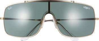 A wrap frame offers more UV coverage in these modern shield sunglasses topped by a distinct brow bar.