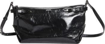 Spacious enough to hold all your essentials but still be manageable, this roomy crossbody bag is made of glossy glazed leather and punctuated with minimalist logo lettering.
