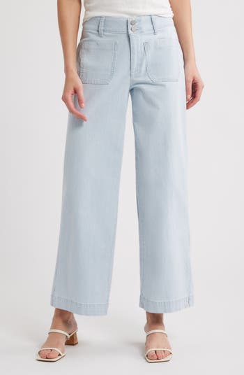 Patch pockets and a striped wash bring plenty of casual-chic style to these wide-leg jeans made from low-stretch denim.