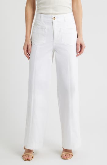 Get things done in these stretch-twill utility pants made with a high waist, full-length wide legs and a solid hue.