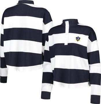 Celebrate your unwavering support for the LA Galaxy with the Antigua Women s White LA Galaxy Radical Rugby Stripe Long Sleeve T-Shirt. This stylish tee features a four-button placket, dropped shoulders, and embroidered LA Galaxy graphics, proudly displaying your allegiance to the team. Side splits at the waist hem add a touch of flair, making this t-shirt the perfect way to show your LA Galaxy pride both on and off the field.