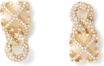 GOLD PLATED - ARROW DESIGN - ARROW CHAIN EARRINGS STRASS BRASS + STRASS