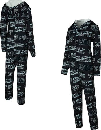 Women s Concepts Sport Black Las Vegas Raiders Roadway Allover Print Microfleece Full-Zip Union Suit