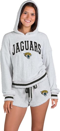 Stay comfortable and stylish while showing your Jacksonville Jaguars pride with this Whitley Long Sleeve Hoodie Top Shorts Set from Concepts Sport. This stylish set includes a long sleeve hoodie top and matching shorts, allowing you to showcase your Jacksonville Jaguars pride in ultimate comfort. The hoodie features rib-knit cuffs and hem for a snug fit, while the shorts have an elastic waistband with a drawstring for a personalized feel. This set is perfect for lounging at home, catching some Z s or showing off your team spirit.