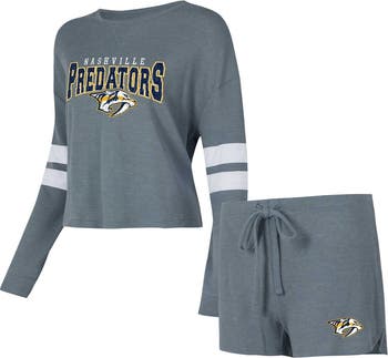 Women s Concepts Sport Gray Nashville Predators Meadow Long Sleeve T-Shirt Shorts Sleep Set