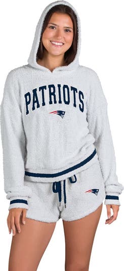 Stay comfortable and stylish while showing your New England Patriots pride with this Whitley Long Sleeve Hoodie Top Shorts Set from Concepts Sport. This stylish set includes a long sleeve hoodie top and matching shorts, allowing you to showcase your New England Patriots pride in ultimate comfort. The hoodie features rib-knit cuffs and hem for a snug fit, while the shorts have an elastic waistband with a drawstring for a personalized feel. This set is perfect for lounging at home, catching some Z s or showing off your team spirit.