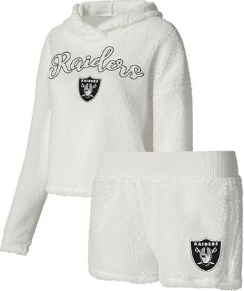 Women s Concepts Sport White Las Vegas Raiders Fluffy Pullover Sweatshirt Shorts Sleep Set