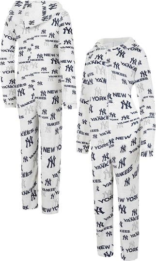 Rewind to your childhood and indulge in the comfort and style of this zippered Docket Union onesie by Concepts Sport. It features unmistakable New York Yankees graphics printed all over, leaving no doubt on who your favorite club is. Microfleece fabric and Sherpa lining in the hood offer optimal softness.