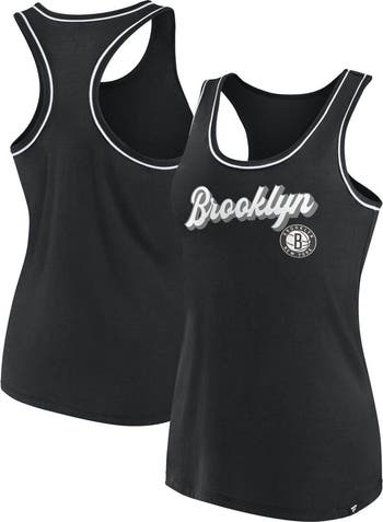 The Women s Fanatics Branded Black Brooklyn Nets Wordmark Logo Racerback Tank Top is the perfect way to show your support for the Brooklyn Nets. Made from soft cotton, this tank top features a scoop neck and screen-printed graphics that proudly display the Nets logo. Whether you re cheering on the team at the game or relaxing at home, this tank top will keep you comfortable and stylish.