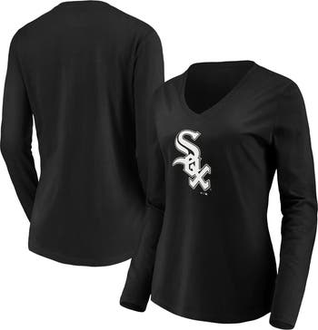 The Women s Fanatics Branded Black Chicago White Sox Official Logo Long Sleeve V-Neck T-Shirt is the perfect way to show your support for the Chicago White Sox. Made from soft cotton, this shirt features screen-printed graphics of the official Chicago White Sox logo, so you can proudly display your team spirit. Whether you re cheering from the stands or just hanging out at home, this shirt is sure to become a favorite.