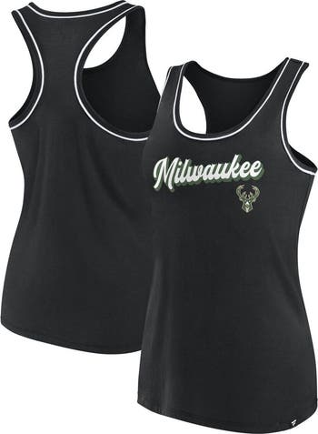 The Women s Fanatics Branded Black Milwaukee Bucks Wordmark Logo Racerback Tank Top is the perfect way to show your support for the Milwaukee Bucks. Made from soft cotton, this tank top features a scoop neck and screen-printed graphics of the Bucks iconic wordmark logo. Whether you re cheering on the Bucks at the game or relaxing at home, this tank top is sure to keep you comfortable and stylish. The Milwaukee Bucks are one of the most storied franchises in NBA history, and their fans are some of the most passionate in the league. This tank top is a great way to show your support for the Bucks and your love for the game of basketball.