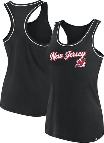 The Women s Fanatics Branded Black New Jersey Devils Wordmark Logo Racerback Scoop Neck Tank Top is the perfect way to show your support for the New Jersey Devils. Made from soft cotton, this tank top features a scoop neck and racerback design for a comfortable and stylish fit. The screen-printed graphics of the New Jersey Devils Wordmark Logo proudly display your team spirit. Whether you re cheering on the Devils at the game or just showing your support around town, this tank top is a must-have for any fan.