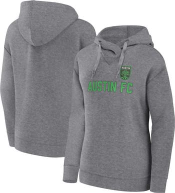 The Women s Fanatics Branded Heather Gray Austin FC Script Pullover Hoodie is the perfect way to show your support for the Austin FC. Made from a comfortable cotton and polyester blend, this midweight hoodie is ideal for moderate temperatures. Screen-printed graphics proudly display the Austin FC logo, while the hooded design keeps you warm and cozy. Whether you re cheering on the team at the stadium or relaxing at home, this hoodie is a must-have for any Austin FC fan.