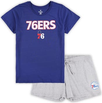 The Women s Fanatics Branded Royal/Heather Gray Philadelphia 76ers Plus Size T-Shirt and Shorts Combo Set is the perfect way to show your support for the Philadelphia 76ers. The set includes a T-shirt and shorts, both made from comfortable cotton. The T-shirt features a crew neck and screen-printed graphics of the Philadelphia 76ers logo, while the shorts have an elastic waistband with a drawstring and an inseam that measures approximately four inches on size 1X. Whether you re cheering on the Philadelphia 76ers at the game or relaxing at home, this combo set is sure to keep you comfortable and stylish.