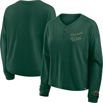Dress fashionably and comfortably on Minnesota Wild game day in this Oversized All Out Effort Long Sleeve Henley T-Shirt by Fanatics. Its oversized design and dropped shoulders provide a relaxing fit with plenty of room for effortless movement. The team name in cursive and understated logo perfectly complement the stylish look of this Minnesota Wild top.